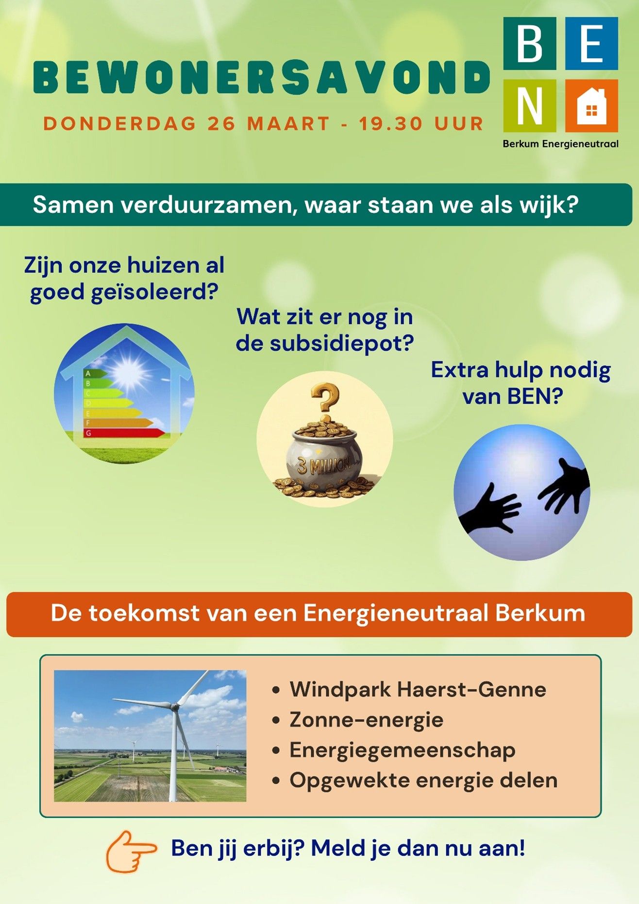 Er zijn mooie verduurzamingsdoelstellingen voor onze wijk maar gaat dat ook lukken? In Berkum is er tot november 2028 BEN subsidie voor verduurzaming. Maar hoe ver zijn we nu als wijk? Wordt er al veel gas bespaard en wat zit er nog in de subsidiepot? Gaan we van het gas af en wanneer dan? Hoog tijd om de tussenbalans op te maken en te vertellen wat de status is en welke stappen nog gezet worden.